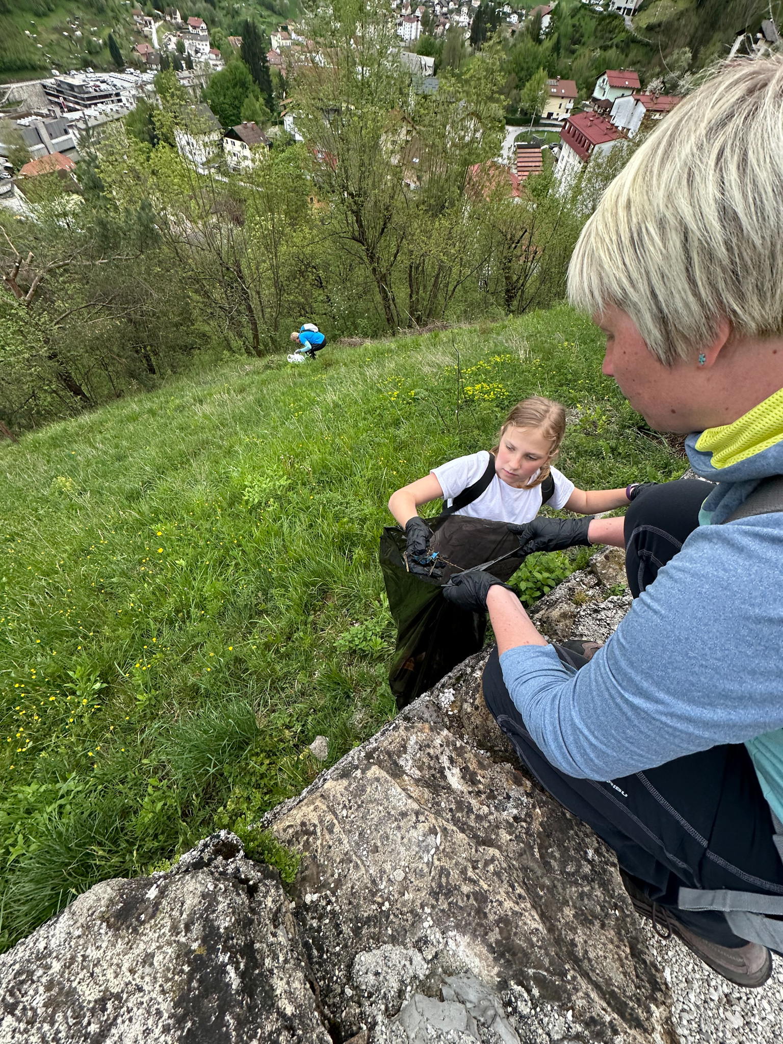 Niti malo nam ni bilo dolgčas, saj smo bili zaposleni z opazovanjem. Vseh 20 udeležencev je venomer s prsti kazalo na smeti ob poti. Papirčki, plastične vrečke, cigaretni ogorki, pa tudi večji kovinski odpadki nam niso ušli izpod rok. Sprehodili smo se mimo psihiatrične bolnišnice, nato pa nas je čakal še zadnji vzpon do kmetije Podobnik, kjer smo odložili naš tovor in si vzeli čas za zasluženo malico. Nato je sledil le še spust nazaj v mesto, med katerim smo pobrane smeti odvrgli v kontejner.