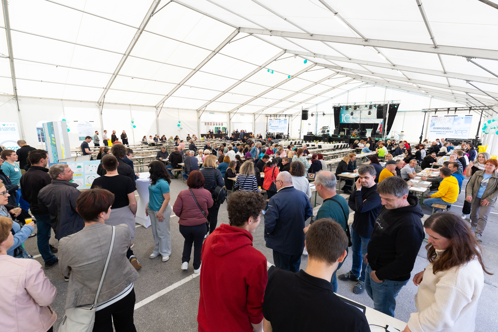 Zato so zaposleni leta 2025 seveda v središču pozornosti praznovanj na lokacijah skupine E.G.O. po vsem svetu. Proslave 22. aprila 2025 v Cerknem se je udeležil tudi generalni direktor E.G.O. in vsi zaposleni v družbi ETA ter visoki predstavniki lokalnih oblasti in združenj. Na majhni razstavi so se gostje lahko podali na potovanje skozi čas v 100-letno zgodovino skupine E.G.O. Program, ki je sledil, je bil pester in zabaven. Nagovori so se v programu izmenjevali s podelitvijo jubilejnih priznanj in razglasitvijo zmagovalca umetniškega tekmovanja v Cerknem. Uradni program so z glasbo spremljali otroci iz osnovne šole Cerkno. Dobra hrana in glasba sta zaokrožili čudovit večer.