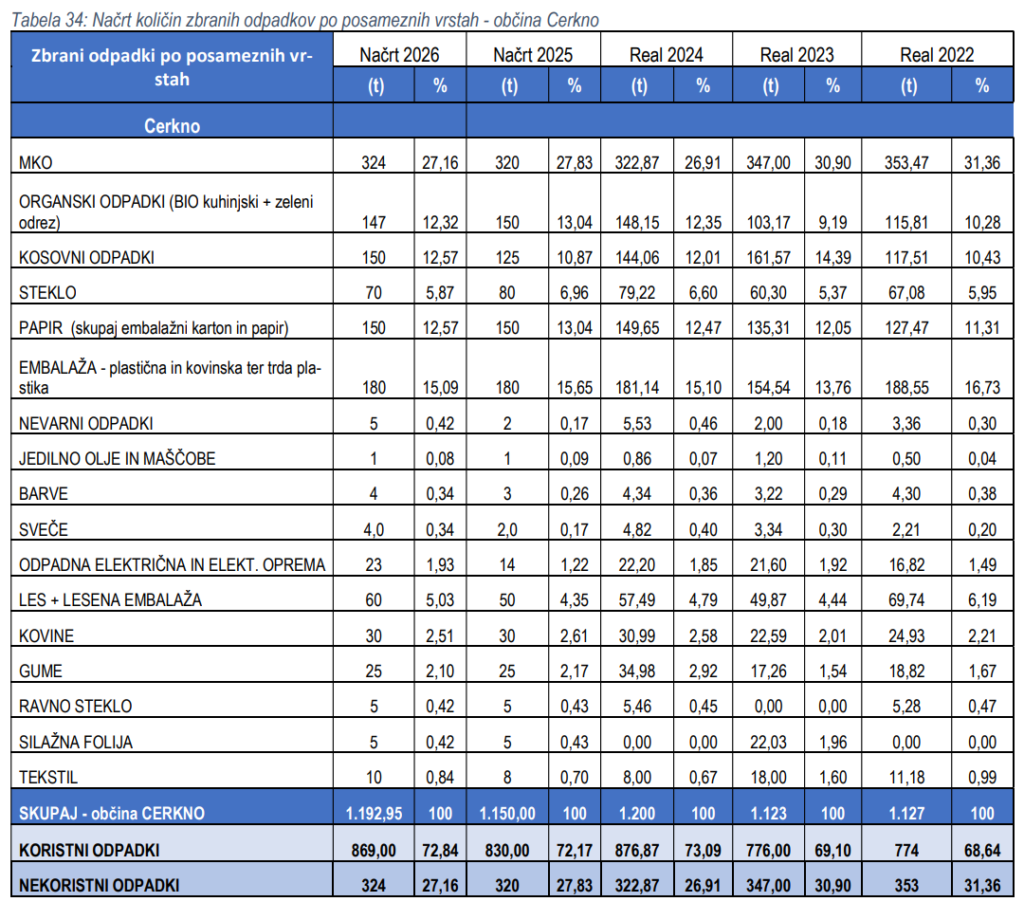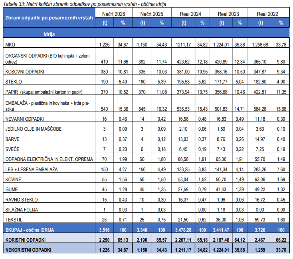 vir: iz Poslovnega načrta za leto 2026 Komunale Idrija