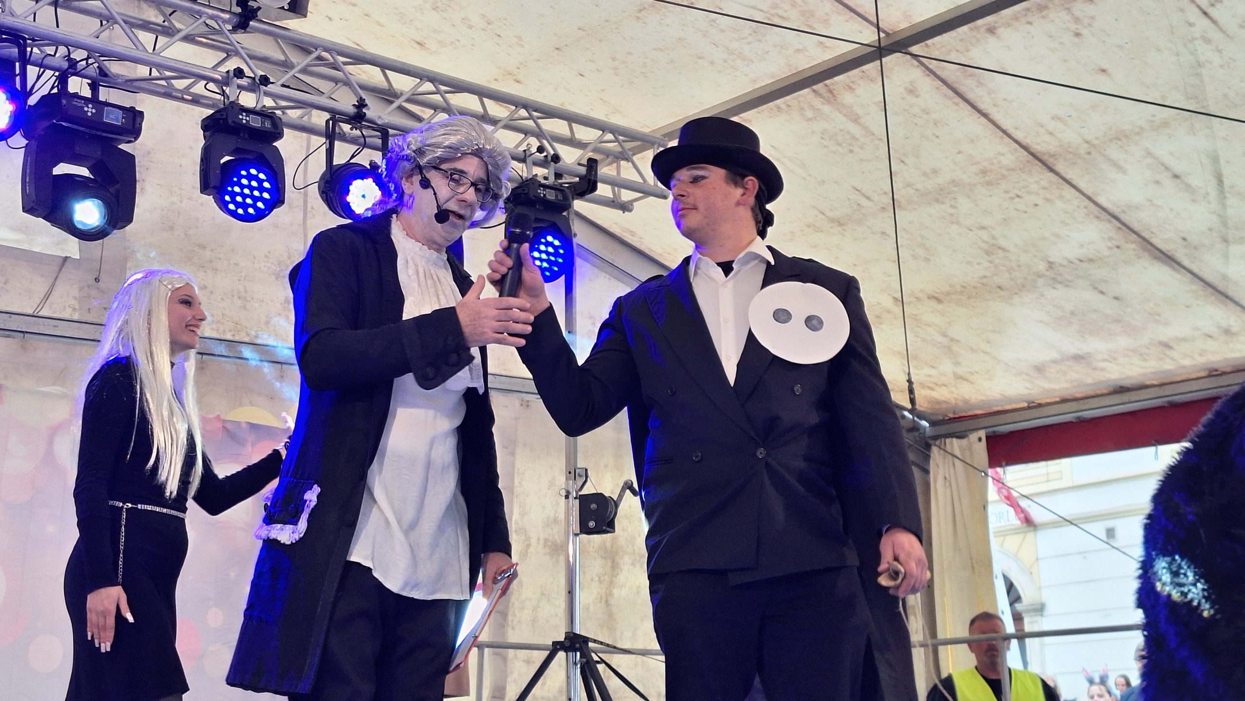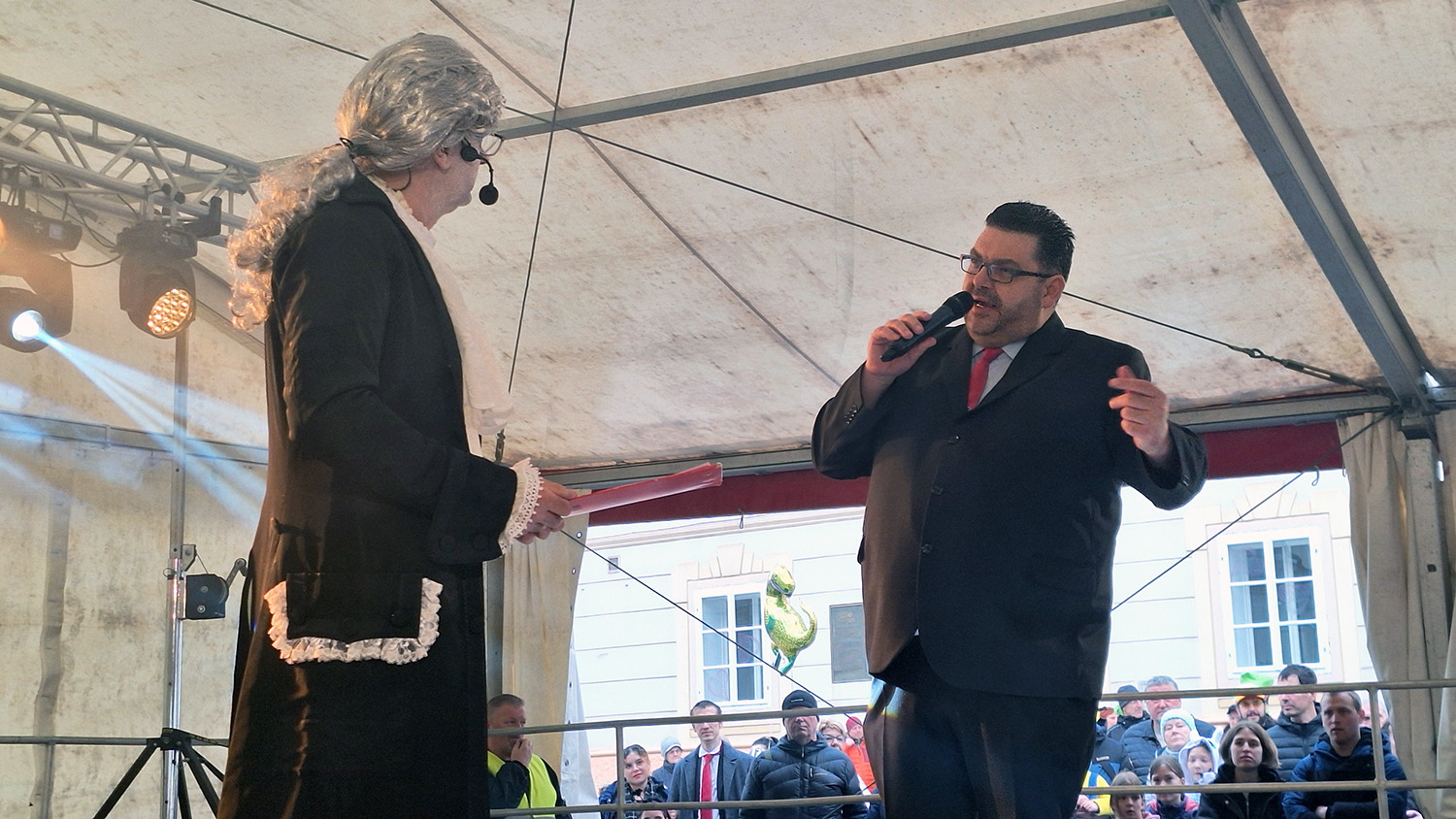 Osrednji gost spektakla je bil Tomaž Vencelj, ki je bil našemljen v župana. V skrbno ukrojenem suknjiču in s kravato okoli vratu je stopil na oder in v izborni slovenščini nagovoril ljudstvo. Potrdil je, da imajo v Grapi odlične izkušnje s priseljenci in migranti, saj mirno sobivajo s prišleki iz Prejnute, Čekovnika, Placa in drugih becirkov. Na očitek, da je Idrija mesto duhov pa so odgovorili mladi lovilci, ki so se posebej za to priložnost v mesto pripeljali iz oddaljenih krajev. S hitro in učinkovito akcijo so vse duhove polovili in mesto je po njihovi intervenciji spet zaživelo.