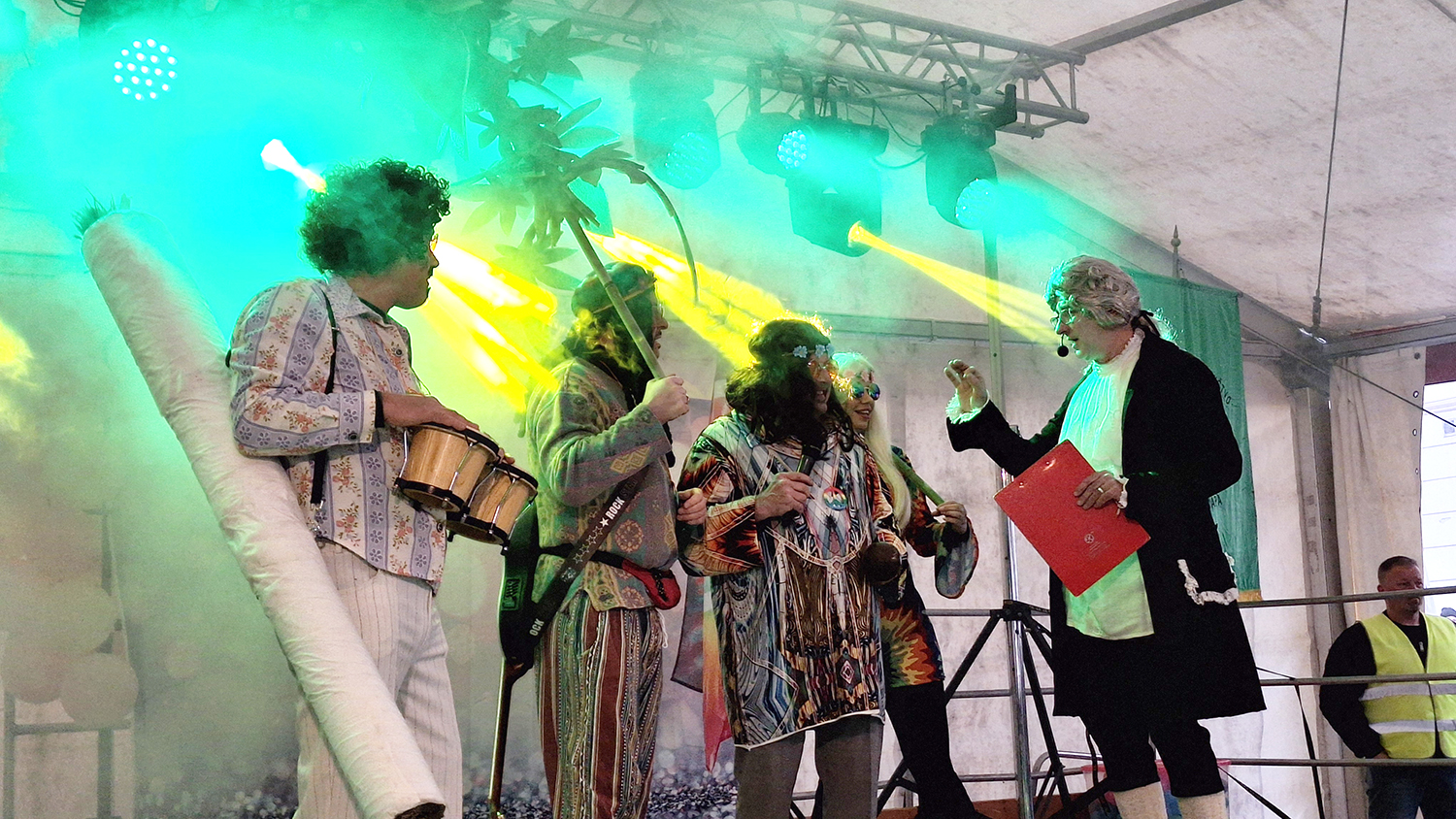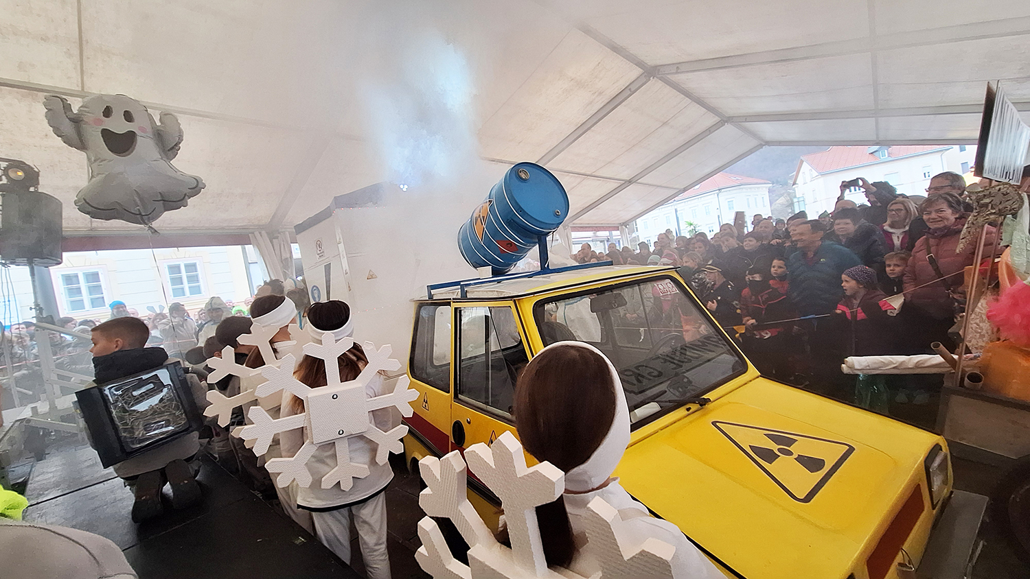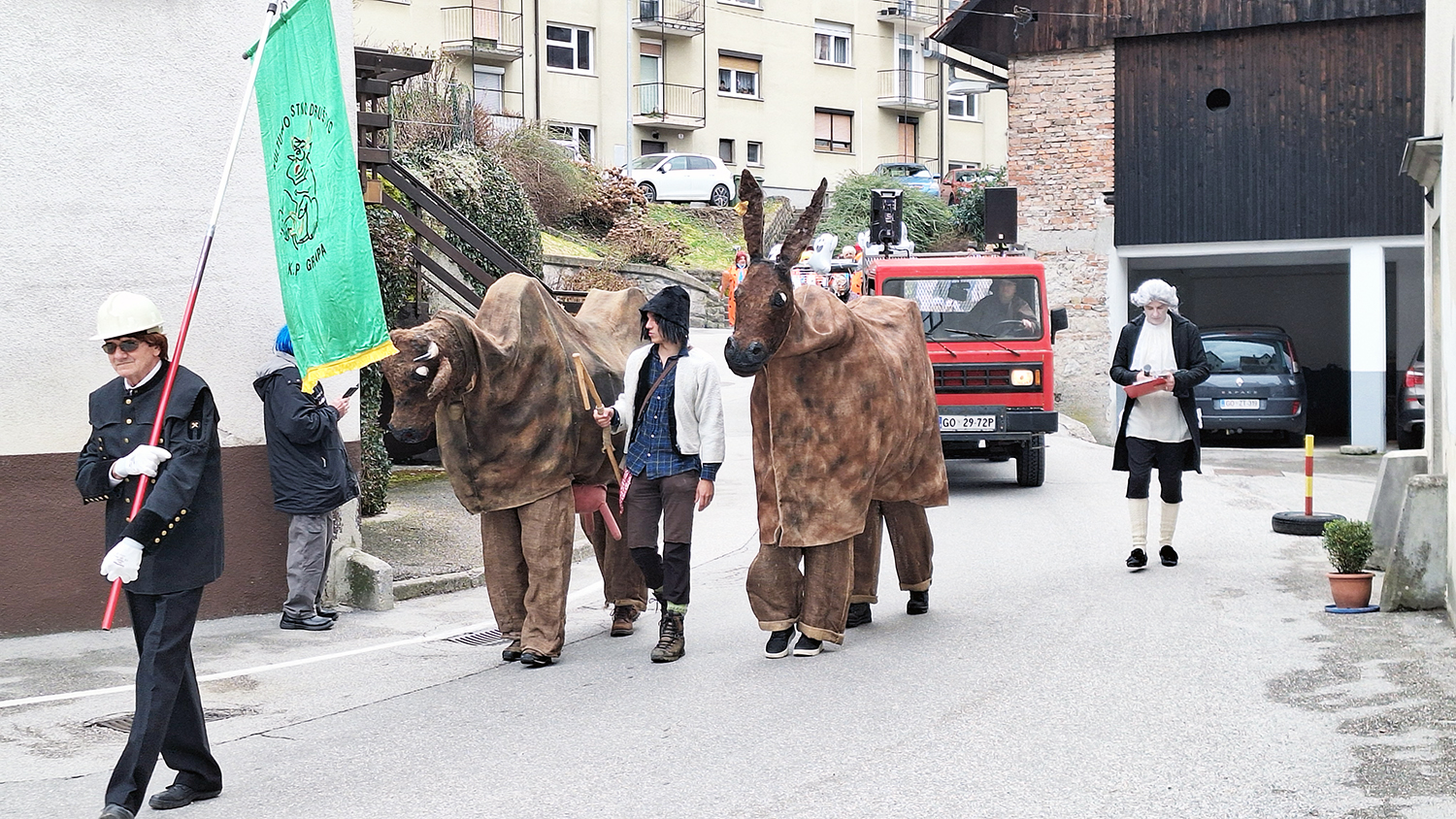 Prav oni so scenaristom dobro uro trajajočega pustnega programa nudili prvo oporno točko s katero so se navezali na nedavno spektakularno odprtje Evropske prestolnice kulture v Novi Gorici. Tam so ob pomoči godbenikov iz Cerknega nastopili idrijski godbeniki, ki pa na dogodku niso igrali na inštrumente ampak le pozirali da igrajo. Glasbo so namreč režiserji spuščali s traku, ki so ga dan prej posneli v dvorani v Spodnji Idriji.
