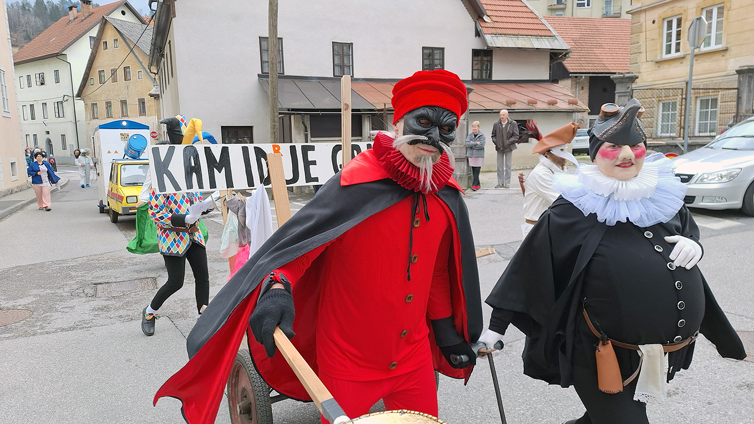 Po dobrem mesecu priprav so člani Kulturnega pustnega društva Grapa na pustno soboto iz Grape mimo Kovačice, Nebes in stare šole v povorki prispeli na Mestni trg, kjer jih je pričakala velika množic Idrijčanov. Na čelo povorke so se tako kot prejšnja leta tudi letos postavili godbeniki pihalnega orkestra Godbenega društva rudarjev, ki bodo v tem letu slavili pomemben jubilej.