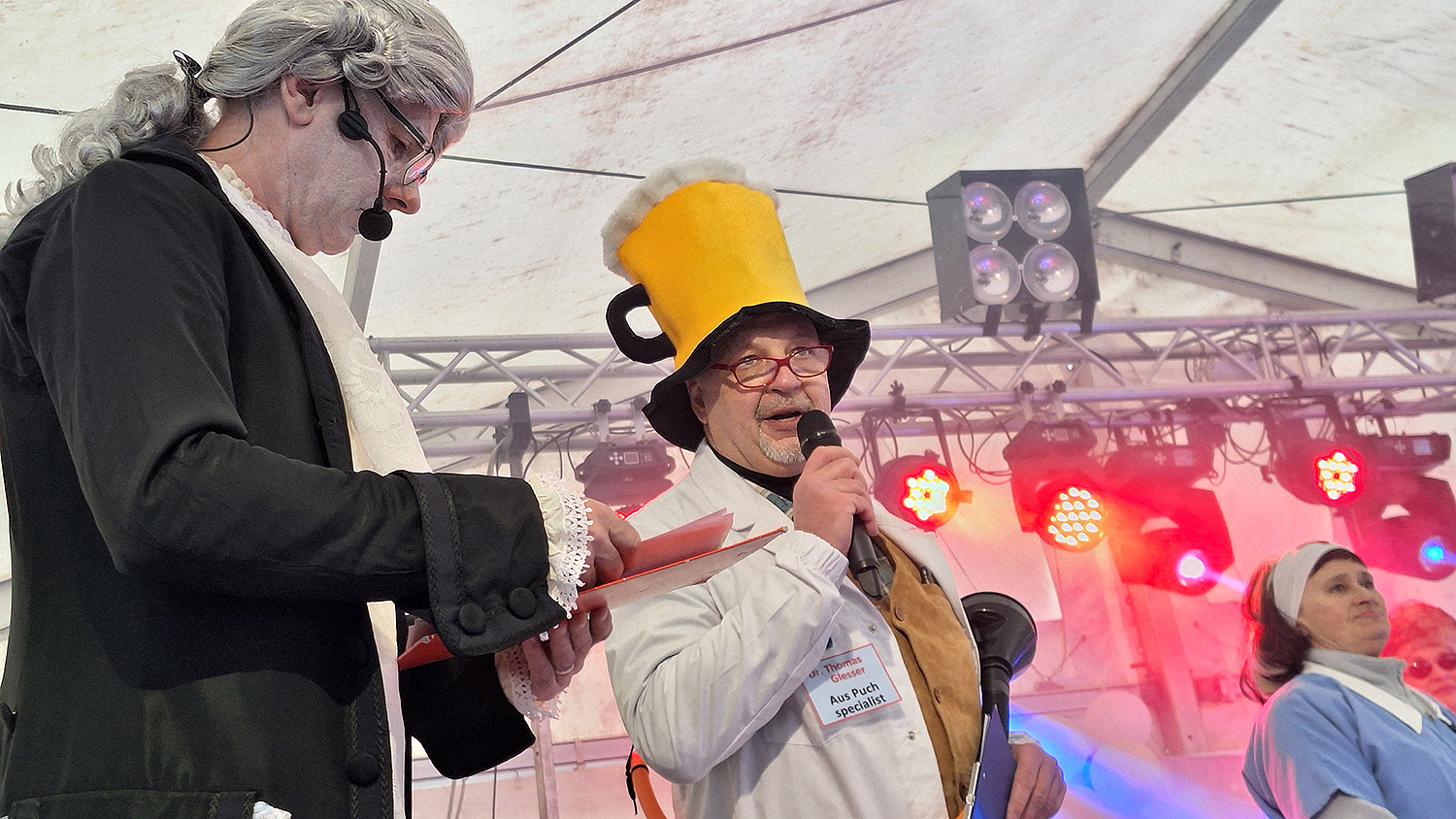 Takih trikov ob nastopu na Mestnem trgu v Idriji ni bilo. David Velikajne v vlogi Ivana Tuneta Skopolija in Jasna Pišlar v vlogi Herte Skocina sta Idrijo razglasila za pravo stalno prestolnico kulture, saj se tu vsako leto odvija pustna povorka. Dokazali so, da je nedavno najdena piščal iz Raubarske jame zagotovo za nekaj tednov starejša od tiste iz Divjih bab, ki je imela na odprtju EPK v Novi Gorici posebej častno meto.